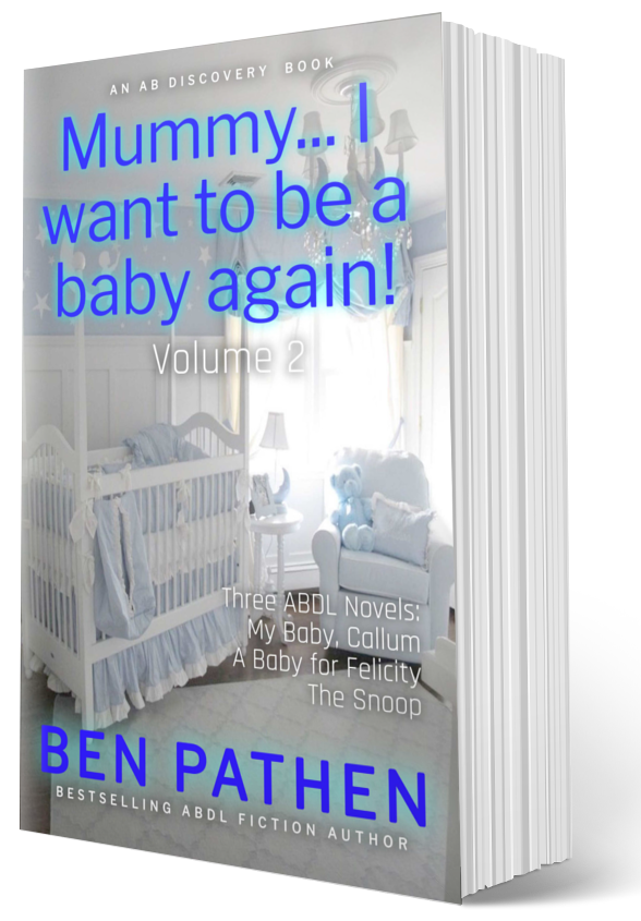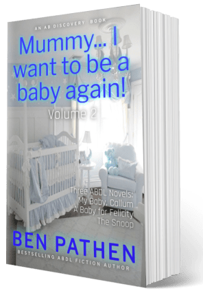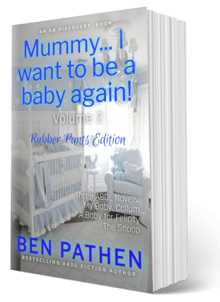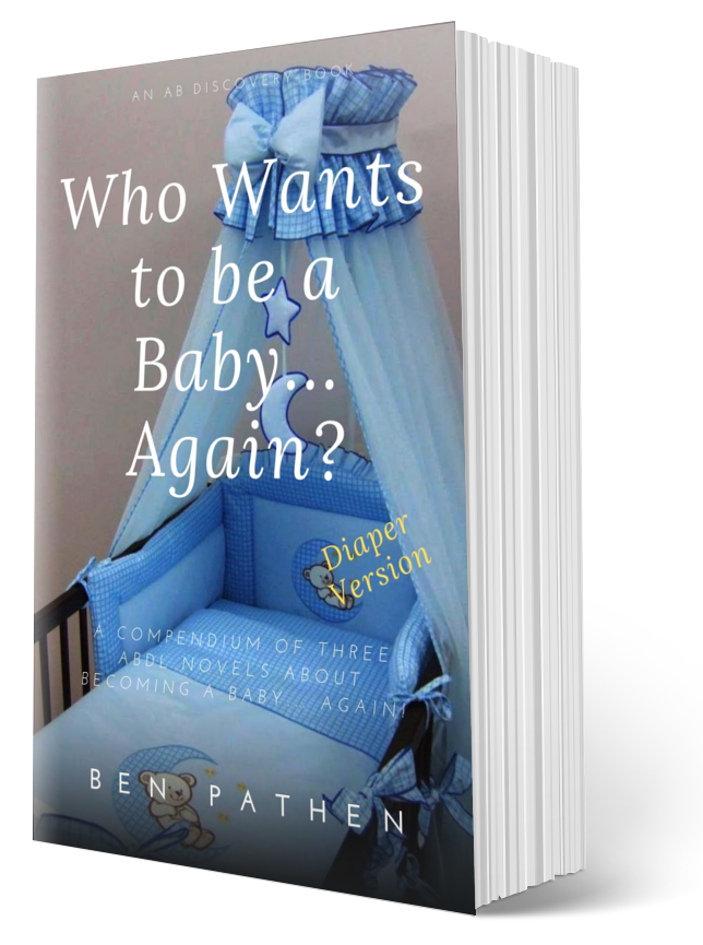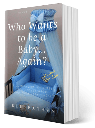 In these three books, you will read about adults who become complete babies once more. If they are not originally completely willing to become babies again, they quickly discover the joys, the peace and comfort of nappies, baby clothes, bottle feeds and baby toys. Infancy is entrancing to almost everyone, but for those special people – adult babies – infancy is only a nappy-change away and stories of grownups reverting to babyhood is less fiction than an innate desire that we express on the pages of a book.
