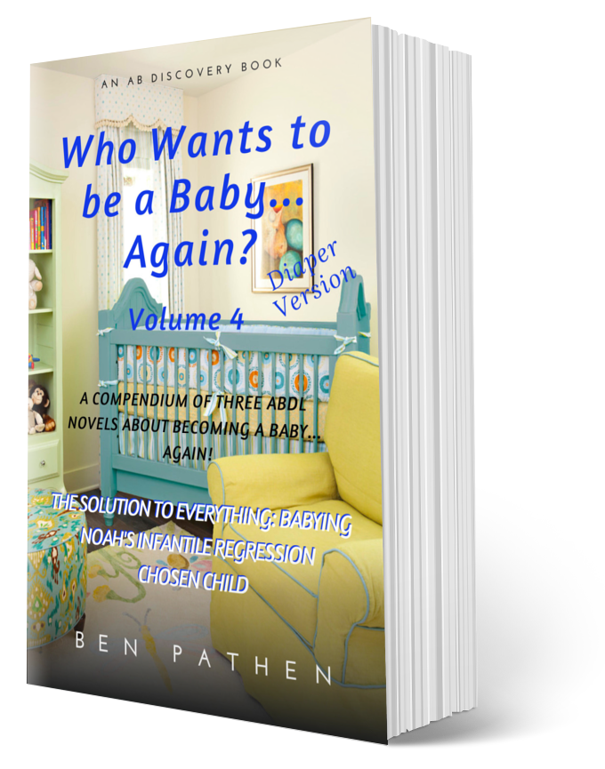 In these three books, you will read about adults who become complete babies once more. If they are not originally completely willing to become babies again, they quickly discover the joys, the peace and comfort of nappies, baby clothes, bottle feeds and baby toys. Infancy is entrancing to almost everyone, but for those special people – adult babies – infancy is only a nappy-change away and stories of grownups reverting to babyhood is less fiction than an innate desire that we express on the pages of a book.